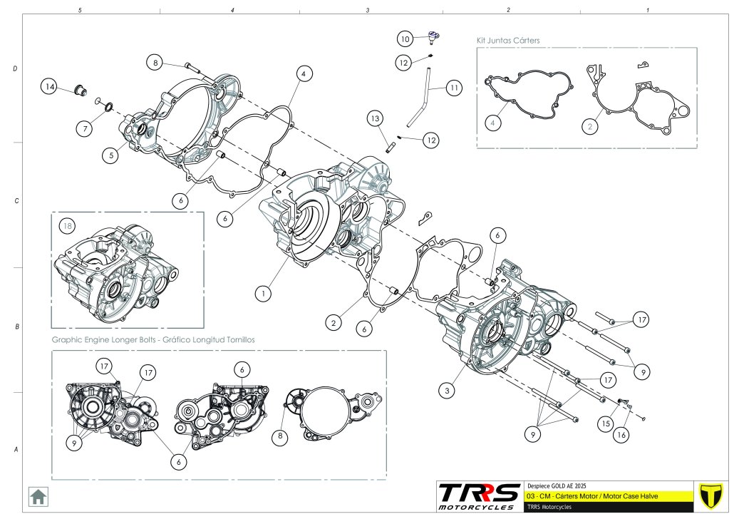 03 - CM - Cárters Motor - Motor Case Halve 2025 TRS One Gold E-Start