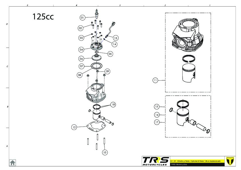 07 - CP - Cilindro y Pistón - Cylinder & Piston 125 cc Explosionado 2023 TRS RR